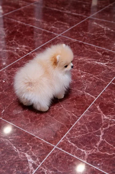 Tipičan pomeranac, malog rasta, mekanog i gustog krzna.